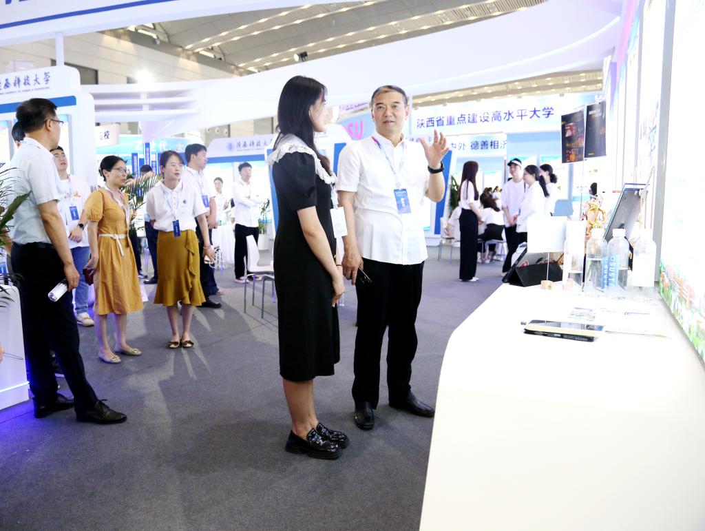 6月24日至26日,由陕西省委教育工委、省教育厅主办的“第十一届陕西高等教育博览会暨第七届陕西高校科技成果第七届陕西研究生创新成果展”在西安国际会展中心举行,贝博官网在1号馆参展。24日下午,陕西省委教育工委书记刘建林、陕西省教育厅厅长王树声等领导莅临贝博官网展位参观指导,校长李志健、副校长蒲永平陪同参观,李志健还现场逐一指导贝博官网研究生创新成果展参展作品并慰问贝博官网参展师生。