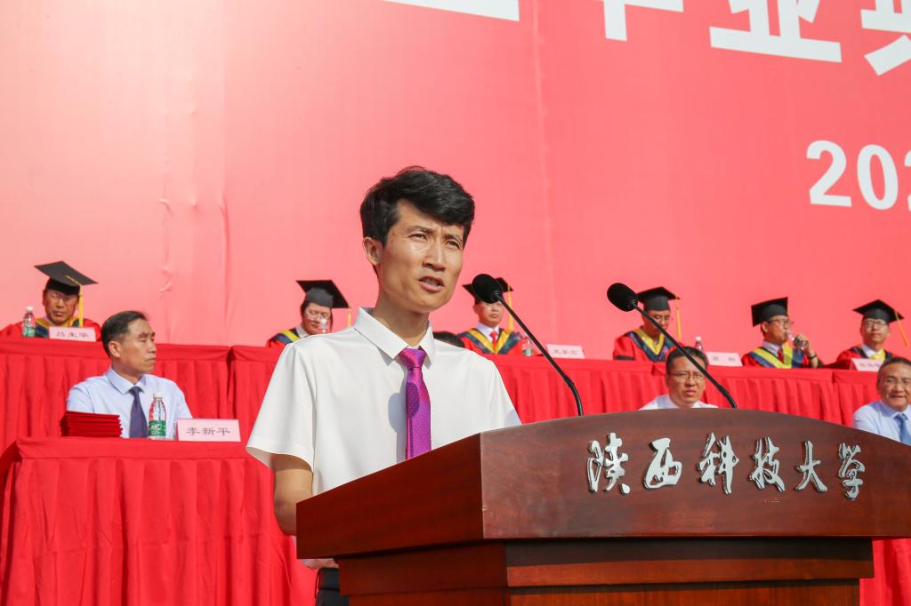 李志健从“情怀:是命运与共、精神:是奋进力量、担当:是吃苦的人生修炼”三个方面深情寄语全体毕业生。他强调,陕科大青年要永远听党话,积极为全面建设社会主义现代化国家贡献青春力量,自觉将“三创两迁”大学精神融入血脉,在青春的赛道上,跑出属于自己的别样风景,跑出属于陕科大青年的良好成绩!