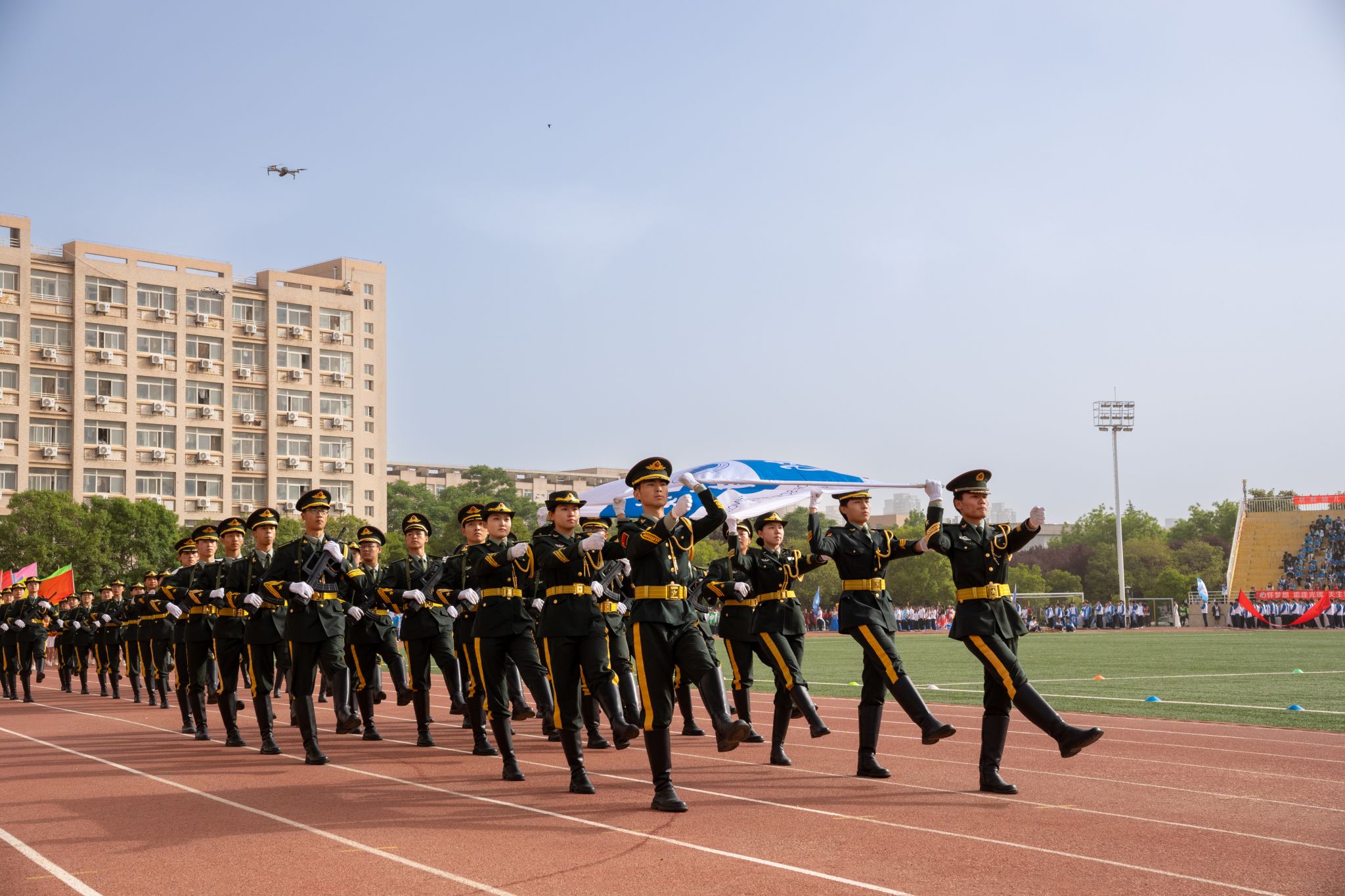 逐梦新时代,青春正当时。4月23日上午,贝博官网2024年田径运动会在学校标准体育场开幕。