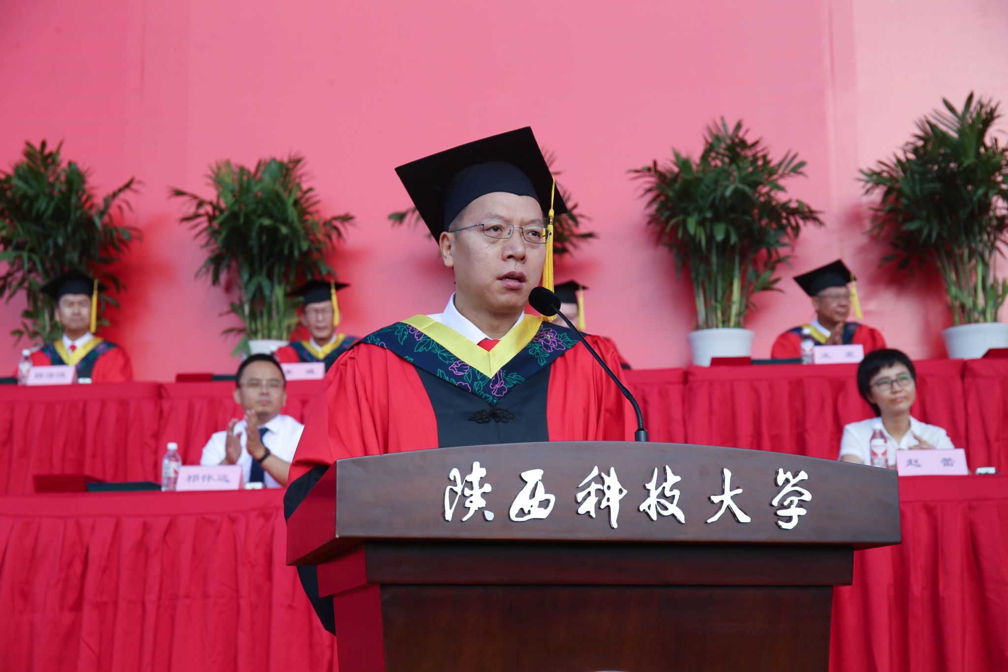 临别之际,校长李志健以“收获、机遇、未来”为题深情寄语毕业生。他饱含深情地回顾了同学们与学校同向同行、砥砺奋斗的成长历程,充分肯定了同学们在学校“三三三”人才培养输出理念的指引下,通过企事业单位就业、学习深造、奔赴基层建功立业、投笔从戎等多种形式勇担重责、成就自我的蝶变成长。他表示,学校软科排名从同学们入校时的161位跃升到今年大家毕业时的124位,这是所有陕科大人求实创新、自强拼搏、奉献社会的精神与行动映照!