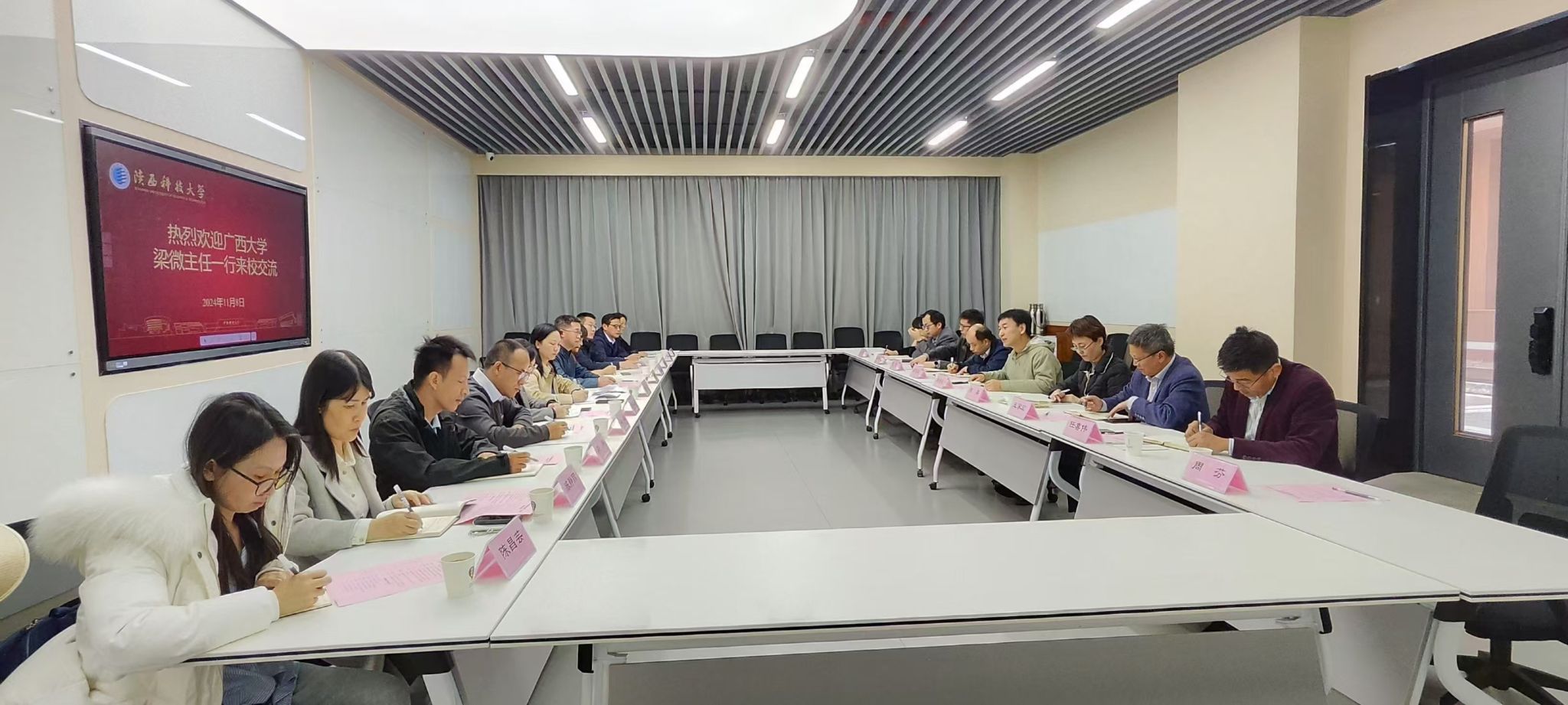 11月8日下午,广西大学教育教学质量监控与评价中心主任梁微一行11人来校调研交流本科教育教学审核评估、专业认证工作,交流会在鸿鹄广场205会议室举行,教务处相关领导及部分学院教学工作负责人参会。会议由教务处处长杨海波主持。