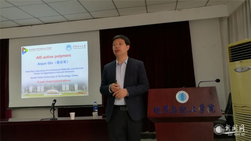 聚集诱导发光(aggregation-induced emission, AIE)是唐本忠院士于2001年提出的一个新科学概念,是指一类在溶液中不发光的分子聚集后发光显著增强的现象。AIE已经成为化学和材料等领域的一个研究热点。秦安军教授首先介绍聚集导致猝灭(aggregation-caused quenching, ACQ)荧光现象和聚集诱导发光的区别、AIE效应的基础知识、发现过程、发展史、主要进展及其在材料、生物、医药等领域的应用。随后,从点击化学的合成策略出发,介绍了点击聚合方法学合成AIE高分子聚合物的方法,炔-胺点击聚合生成AIE活性聚合物的方法及其在活性细胞中点击合成。同时,秦教授在报告中,以生动的实例穿插介绍了研究生应该如何养成良好科研习惯、如何发现科研等问题,勉励研究生勤奋工作,以取得好的科研成果。秦教授严谨而又生动的报告引起了在座师生的热烈探讨,并就AIE小分子的可控制备与相关性能等方面展开深入交流。