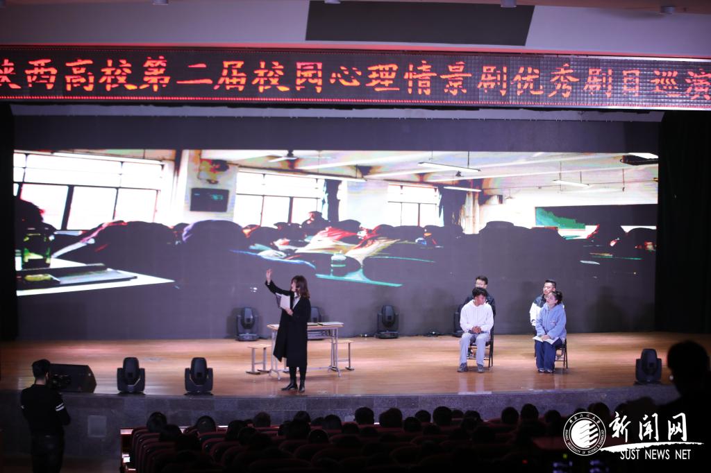 此次巡演活动贝博官网作为出演高校,进行了精心的筹备组织排练,参演学生开展了为期一个多月的剧本完善、排练表演,最终在巡演中以出色的表演赢得了西安医学院、长安大学广大同学的喜爱和掌声。这部由设艺学院选送、贝博官网学生自编自导自演的情景剧《嘿,该醒了》讲述了陷入迷茫困惑的庄子涵在梦中经历退学、失恋而得到警醒,重拾信心拼搏奋斗的故事。此剧代表贝博官网参加了2019年全国心理情景剧大赛并荣获优秀作品奖。与贝博官网一起参与出演的还有长安大学《致亲爱的我们》、西藏民族大学《梦想的天空分外蓝》、西安医学院《别让梦想蒙尘》,剧情涉及宿舍人际关系、学业目标等题材,参演学生的演绎生动精彩,剧情意味深刻,发人深思。演出配合灯光、配乐、背景视频等,以戏剧艺术的手段为观众带来大学生成长与心理调适的启迪与思考。现场观众随着情节变化产生共鸣,反映热烈。