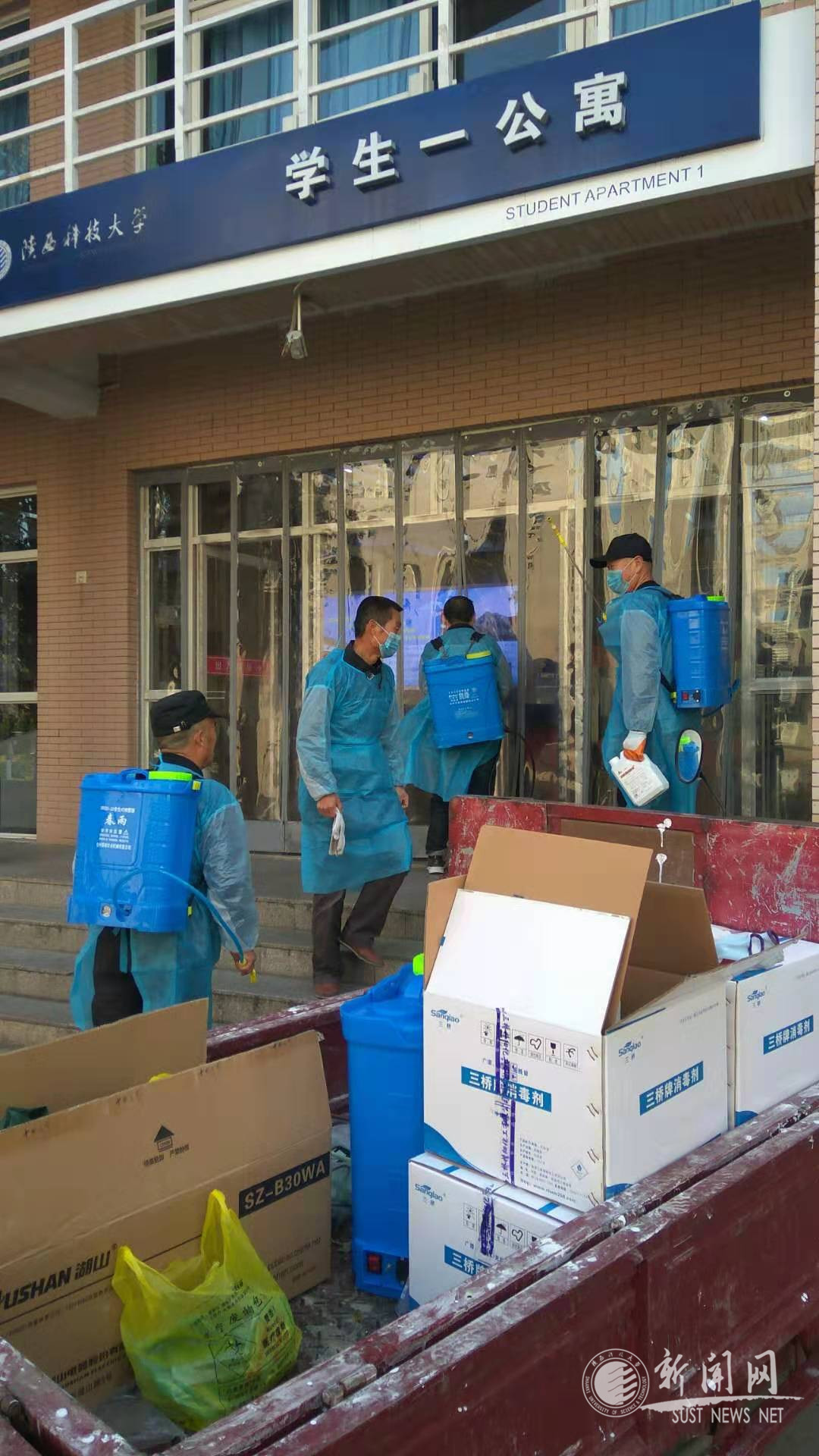 第一轮消毒共用消毒液原液200kg、鼠饵75kg,给学生公寓、饮食中心、图书馆发放84液450瓶、粘鼠板800个。