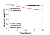 图2.优化的DD(0.4mol%)的PSC和参考PSC用于环境,照明和热稳定性关系曲线。