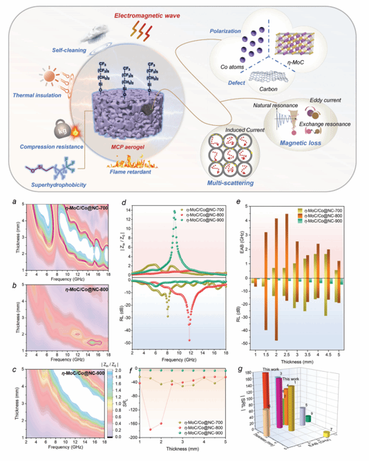 成果一:基于多孔缺陷工程设计的多功能MoCx杂化聚酰亚胺气凝胶用于高效电磁波吸收