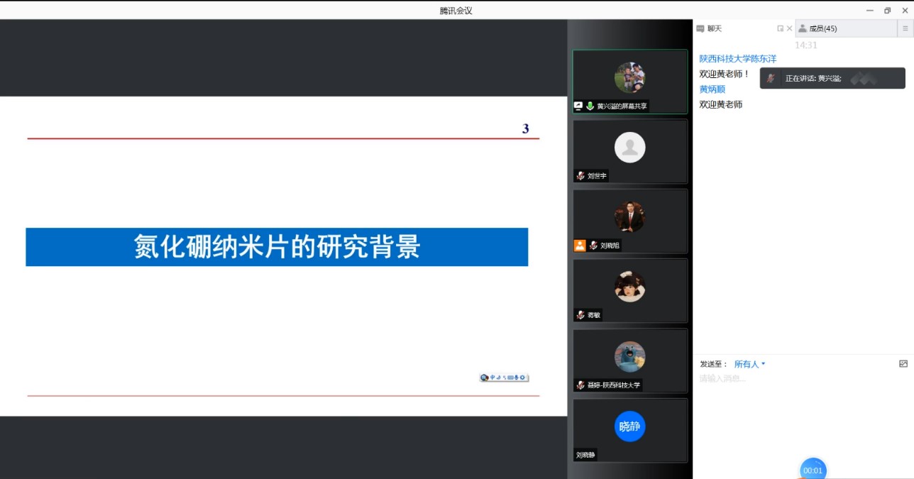 12月11日下午,应材料科学与工程学院邀请,上海交通大学黄兴溢教授做客贝博官网“前沿科学报告”论坛,作了题为“二维氮化硼纳米片的制备及应用”的学术报告。本次报告由材料学院刘晓旭教授主持,学院相关教师和学生参加了本次报告会,因疫情影响,本次报告采取线上的方式进行。