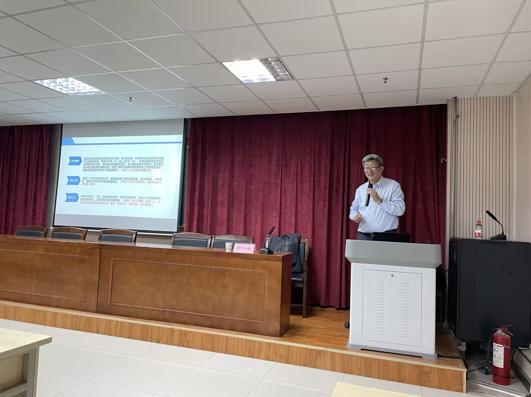 茹少峰指出,教学成果奖对国家、大学和个人发展都至关重要。对国家而言,体现了人才培养的战略地位;对大学而言,体现不同大学的校风、学风和与众不同的育人风格;对个人而言,体现教师教学成就。他用幽默风趣的语言勉励现场教师要高度重视教学工作,回归教育本位。