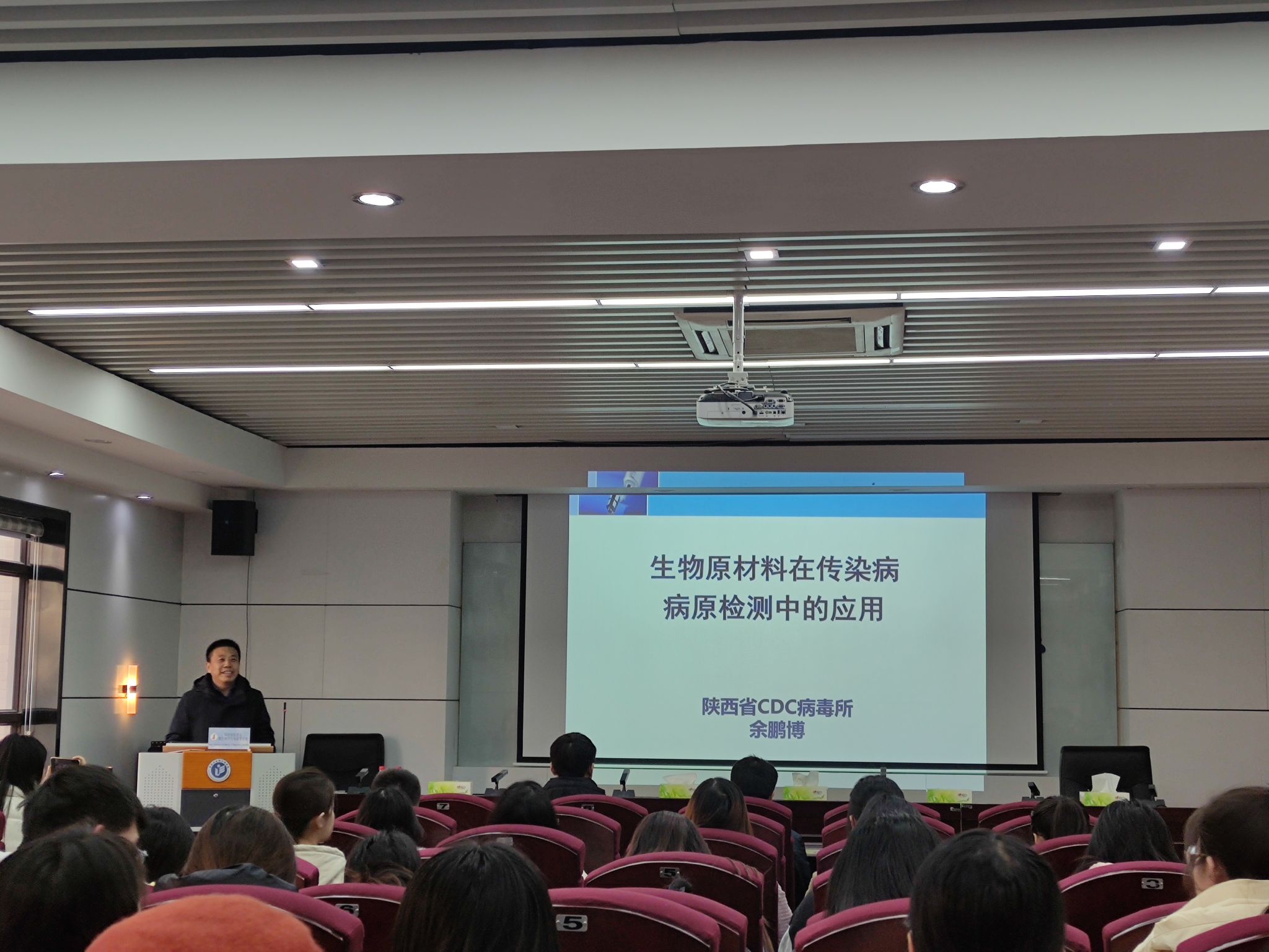 近日,应校科技处和食品科学与工程学院(生物与医药学院)邀请,陕西省疾病预防控制中心病毒所所长余鹏博教授作了题为“生物原材料在传染病病原检测中的应用”的学术报告。食品学院部分教师和全体研究生参加本次报告会,报告会由食品学院院长助理刘宁主持。