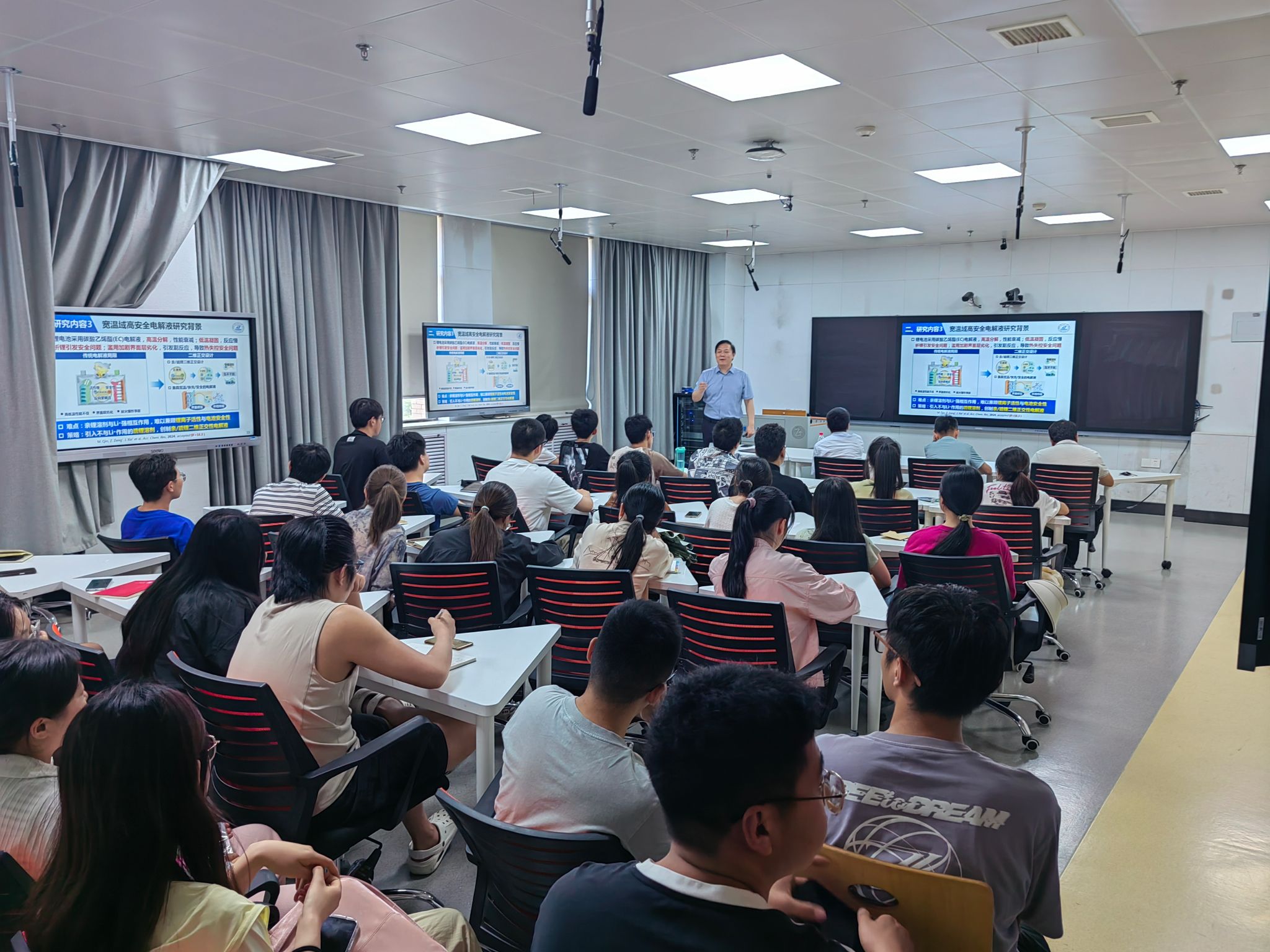 谢佳老师从问题导向,国家战略及未来引领等角度高屋建瓴的向我院师生介绍科学研究该如何找准方向切入课题,对我院师生的科学研究给予方法论上点拨,然后介绍他结合自身的求学与工作经历,教授了其如何平衡科学与工程结合而完成科学研究,且取得重要成果;然后,针对锂离子电池电极材料的结构设计、电池安全与新型高安全的电解液开发等做了精彩的学术报告;最后对青年教师及学生的科研与人生发展做了建设性的指导。此次报告激发了大家的研究兴趣,进一步拓宽了师生们在相关领域的研究方向和思路。