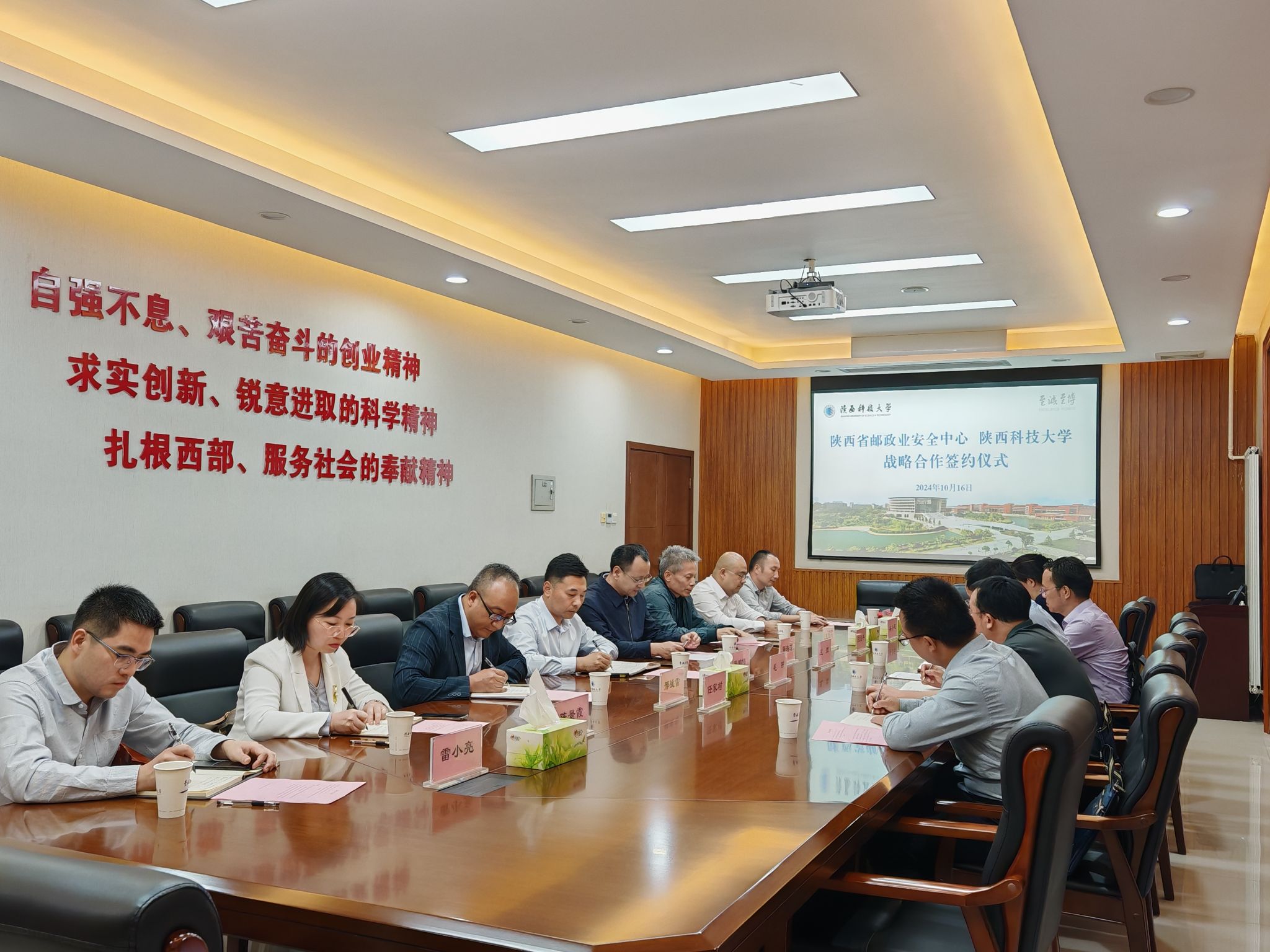10月16日下午,贝博官网与陕西省邮政业安全中心战略合作协议签约仪式在贝博官网逸夫楼举行。陕西省邮政业安全中心主任王辉、副主任毛翀一行5人参加签约仪式。前沿科学与技术转移研究院常务副院长强涛涛,电子信息与人工智能智学院、经济与管理学院相关专家教授参加仪式。会议由前沿院副院长张鹏伟主持。
