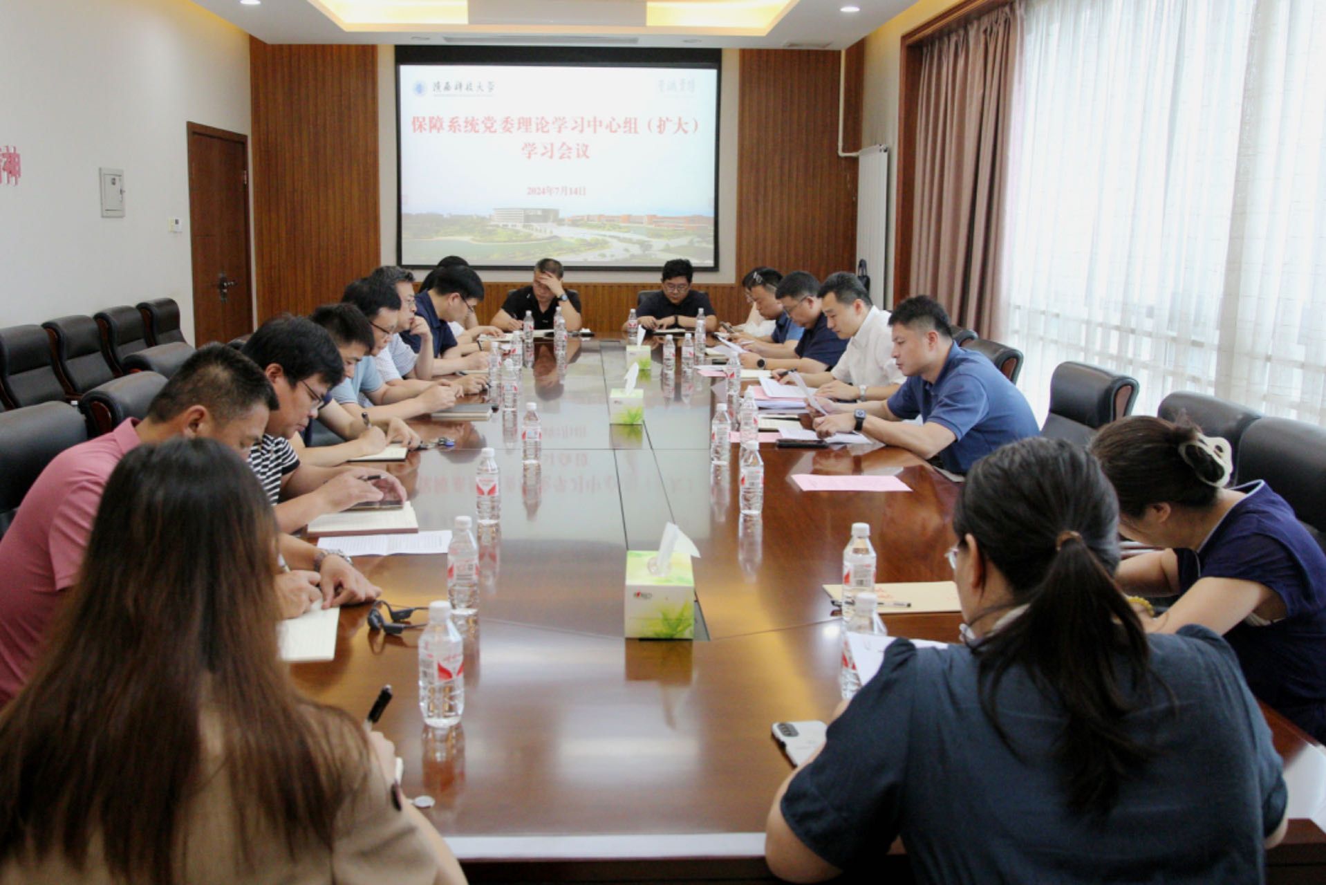 7月14日下午,学校保障系统党委召开党委理论学习中心组(扩大)学习会议,学习贯彻习近平总书记近期重要讲话重要指示精神,传达学校有关会议精神,安排部署保障系统党建重点工作。保障系统党委书记李述麟主持会议。