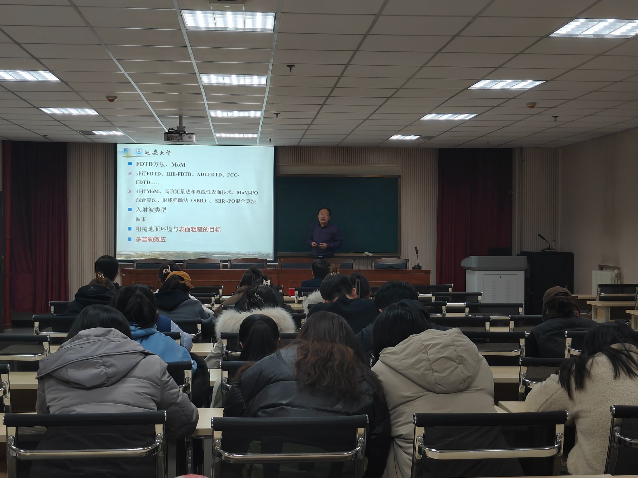 12月26号下午,应贝博官网科技处、物理与信息科学学院邀请,延安大学任新成教授做客贝博官网“前沿科学报告”,在理科楼440报告厅做了题为《典型地面环境与目标雷达散射特性研究进展及展望》的学术报告。学院相关老师、硕士及本科生近80人参加报告会,报告会议由院长刘建科主持。