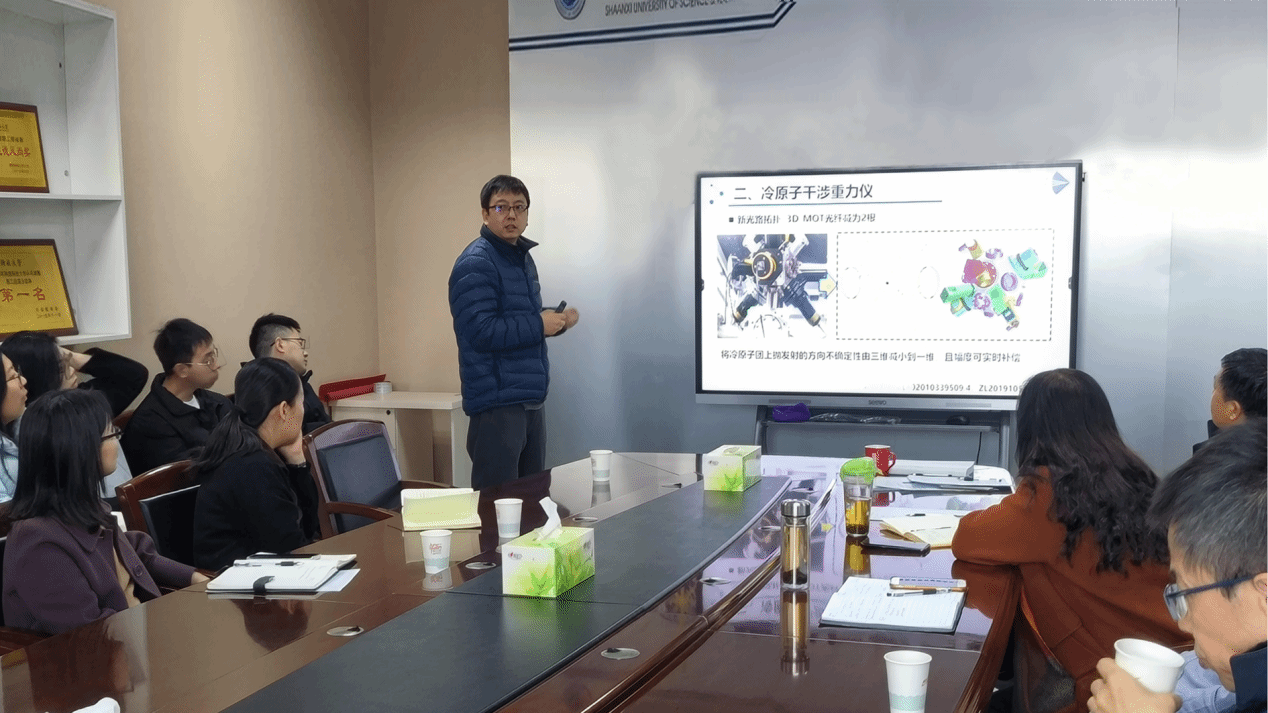 报告会中,贾森副研究员首先为大家介绍了原子的激光冷却、原子态选择和操纵方法、冷原子的干涉传感原理,接着从自己主持研制冷原子干涉绝对重力仪这一课题出发,为大家讲解了冷原子干涉超精密测量的主要应用,并就冷原子干涉的核心技术、关键器件、关键工艺以及冷原子干涉技术的重点难点问题结合自己的工作实际给出了解决方案。